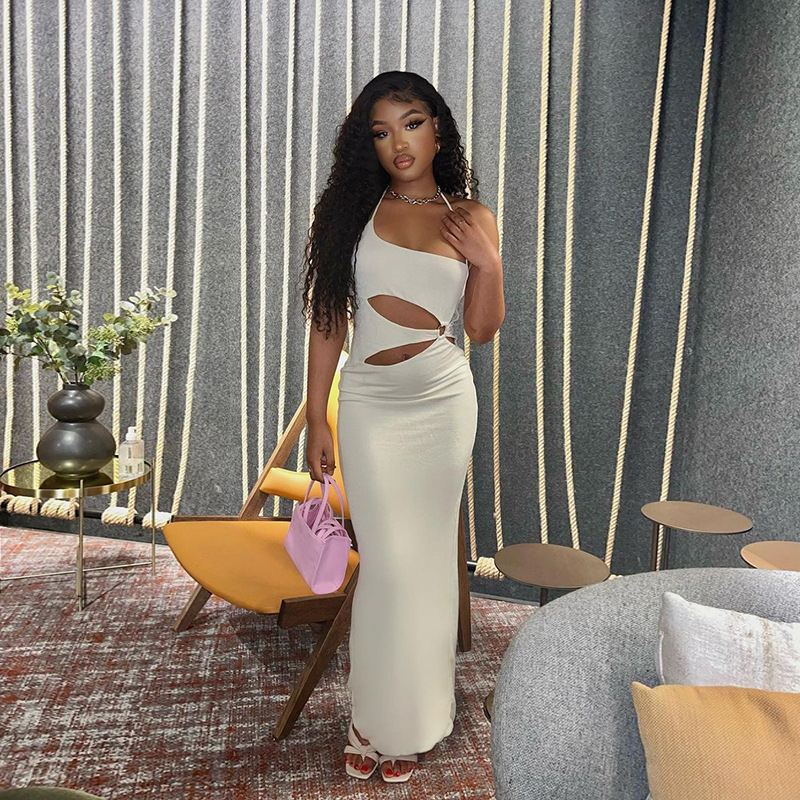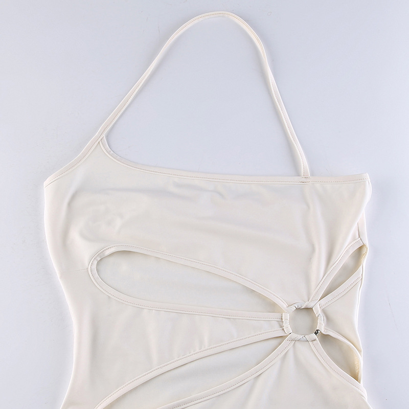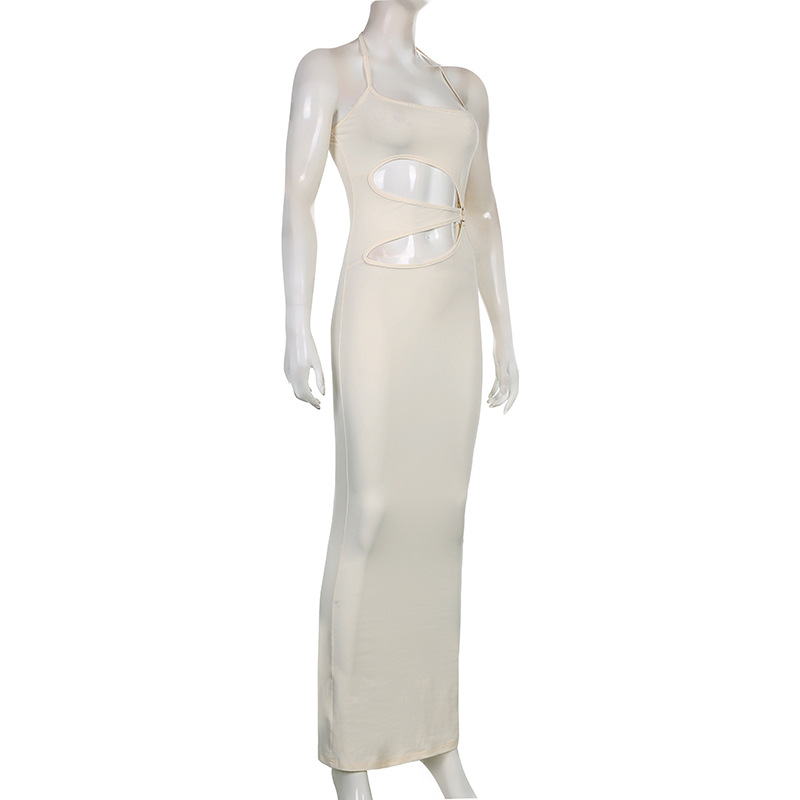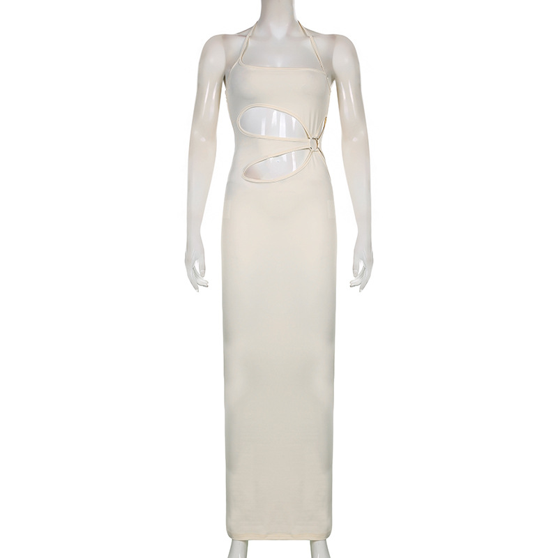 Sunkissed Glamour: Embrace Holiday Vibes with the Women's Ring Hollow Halter Solid Color Dress - Long Skirt for Effortless Summer Style!